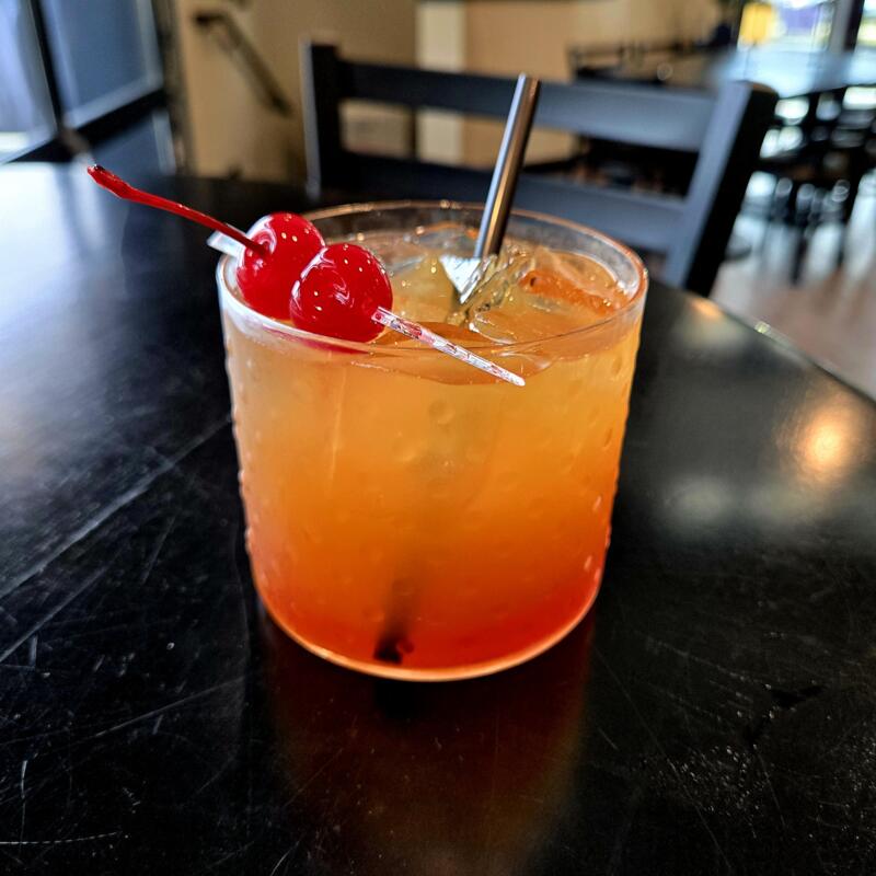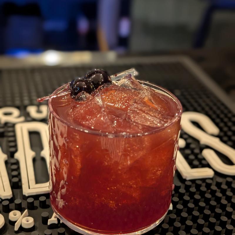Bourbon, muddled orange and Luxardo cherries, splash of bitters and sugar, topped of with your choice of soda